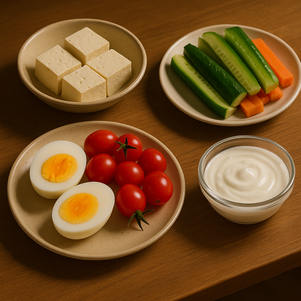 • 야채 스틱(오이, 당근) + 삶은 달걀
